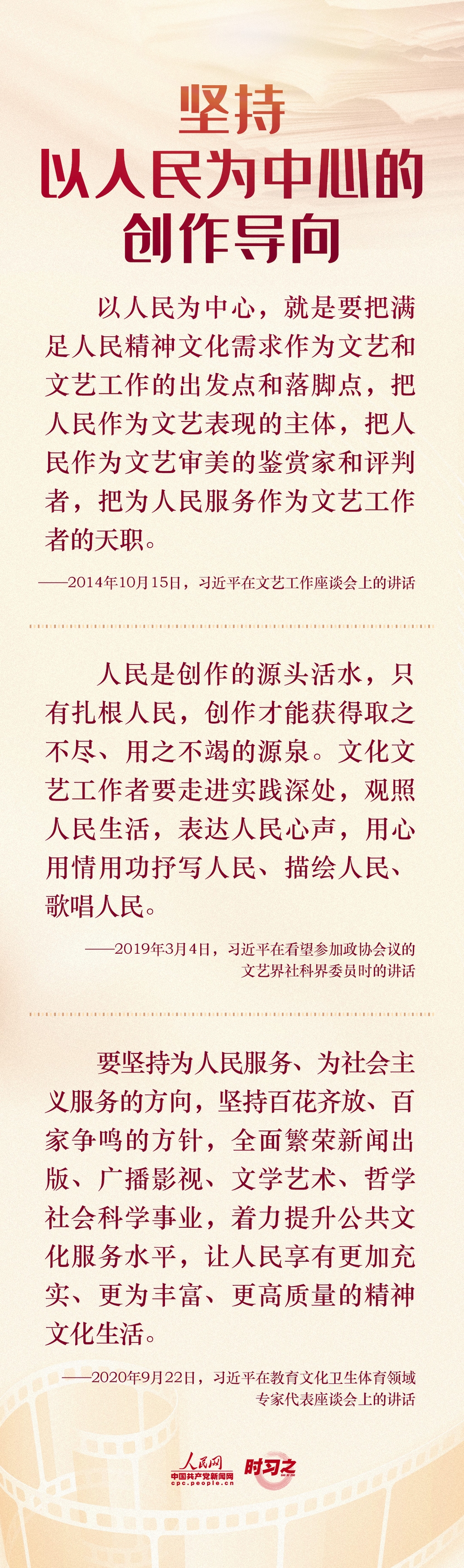 2014年10月15日,习近平总书记主持召开文艺工作座谈会并发表重要讲话,深刻阐述了文艺和文艺工作的地位作用和重大使命,强调“文艺是铸造灵魂的工程,文艺工作者是灵魂的工程师”。七年来,就做好“培根铸魂”工作,习近平多次作出重要论述。