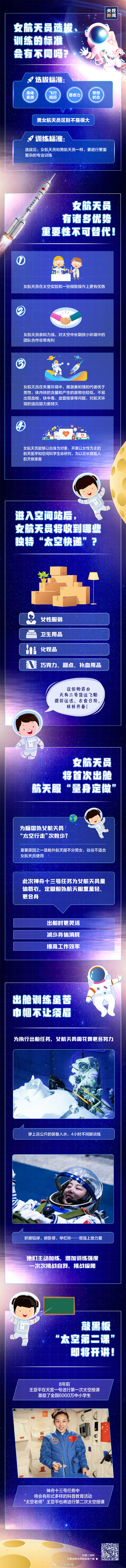 神十三发射圆满成功,王亚平成为中国空间站首位女航天员。为迎接女航天员,中国空间站做了哪些准备?女航天员在太空中有哪些优势?她们的选拔标准、训练标准又有何不同?戳↓转发小知识!赞中国航天!