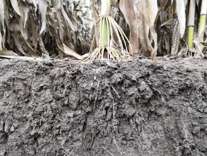 10月9日,梨树县泉眼沟村保护性耕作地块的玉米根系。新华社记者薛钦峰摄