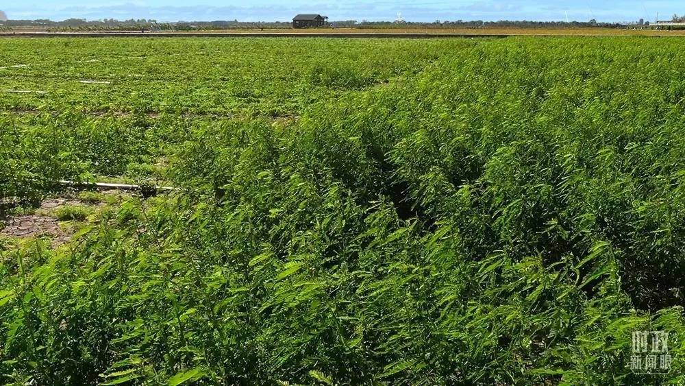 △黄河三角洲农高区。田菁是耐盐碱绿肥作物,能够促进盐碱地用养结合。(总台记者韩森拍摄)