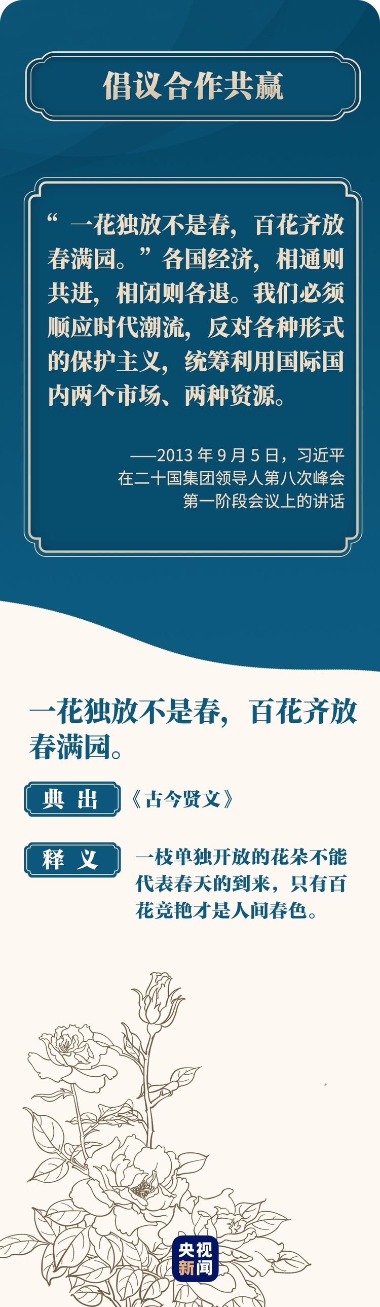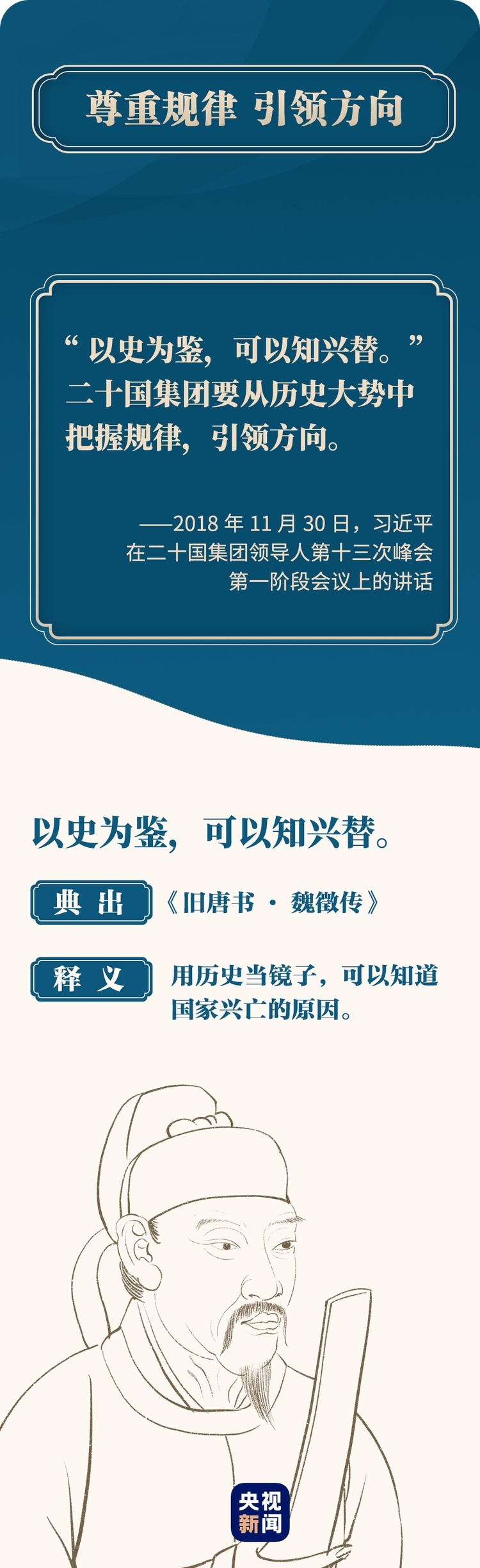 纵观习主席在历次G20峰会上的讲话,他多次引经据典向世界阐述中国的发展观,赋予传统文化新的时代内涵,为完善全球经济治理贡献中国智慧。让我们从那些经典中,领会习近平关于全球发展的深刻思考。