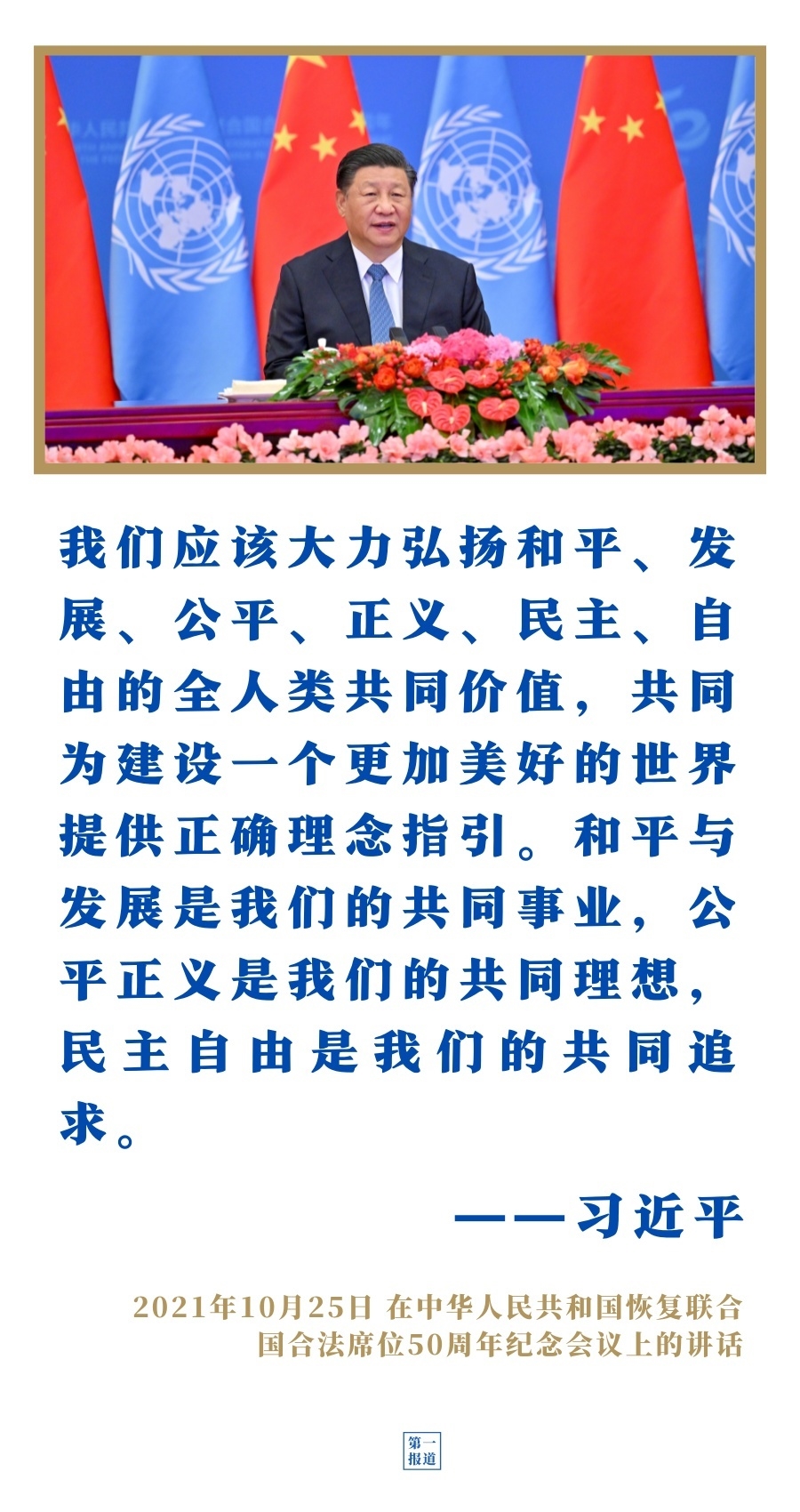 “共同事业”“共同理想”“共同追求”,习近平主席用三个“共同”深刻阐述全人类共同价值的丰富内涵,画出各国人民价值理念的最大同心圆。