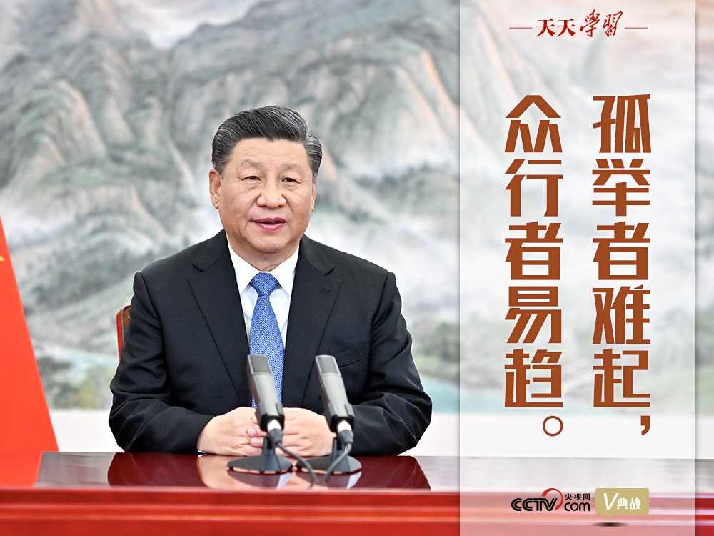 习近平主席多次在国际会议发表重要讲话时引用“孤举者难起,众行者易趋”,旨在强调在经济全球化时代,任何一个国家都不可能孤立于世界之外,团结合作是所有国家的必然选择。2015年在亚非领导人会议上,习主席指出:“非洲有句谚语,‘一根原木盖不起一幢房屋’。中国也有句古话,‘孤举者难起,众行者易趋’。亚非国家加强互利合作,能产生‘一加一大于二’的积极效应。”