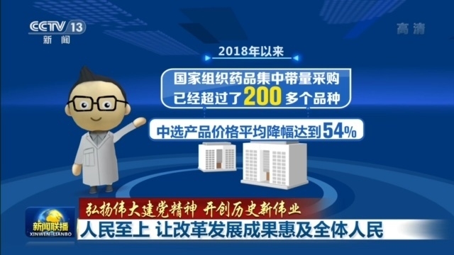 让病有所医、医有所保,健康中国建设惠及千家万户。组织药品集中带量采购、调整国家医保药品目录、改革支付方式……2018年以来国家组织药品集中带量采购超过200多个品种,中选产品价格平均降幅达到54%,减轻群众就医、用药负担。