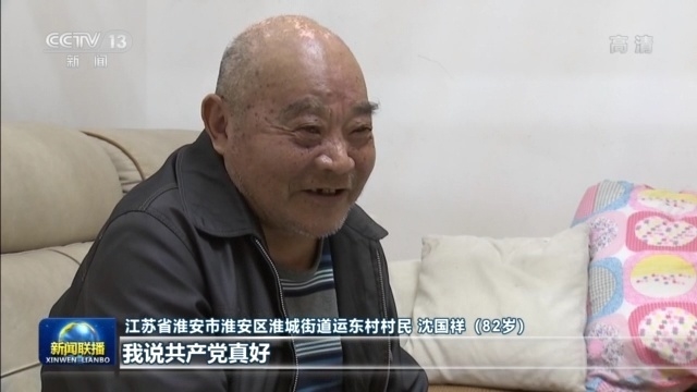 江苏省淮安市淮安区淮城街道运东村村民 沈国祥(82岁):全村现在80岁开外的,(居家养老服务)基本上个个家家都到,每个月都要来四五次,我说共产党真好!现在社会真好,对年纪大的特别关心。