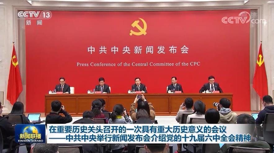 央视网消息 (新闻联播):今天(11月12日)上午,中共中央举行新闻发布会,介绍党的十九届六中全会精神,有关负责同志回答了记者提问。