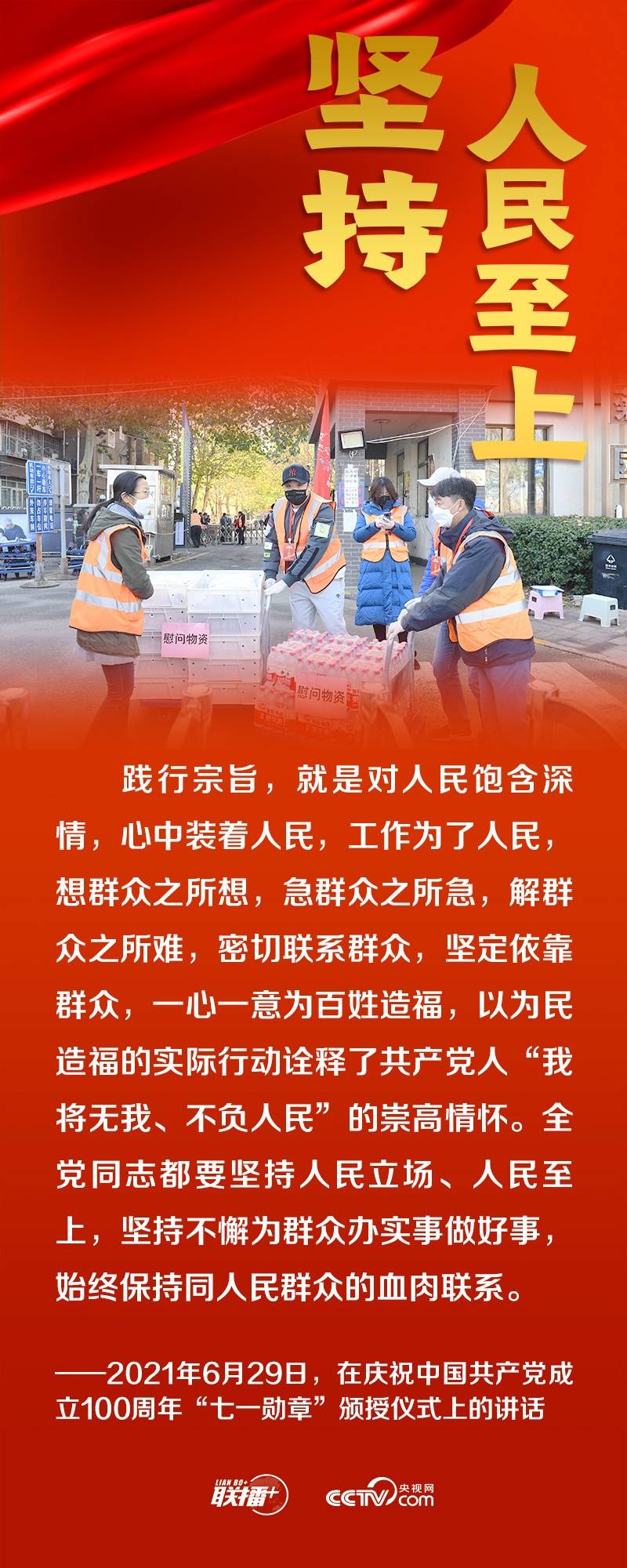 把人民放在心中最高位置,坚持人民立场、人民至上,为人民谋幸福,这是一代代共产党人心中的“国之大者”,也是跨越百年的初心传承。