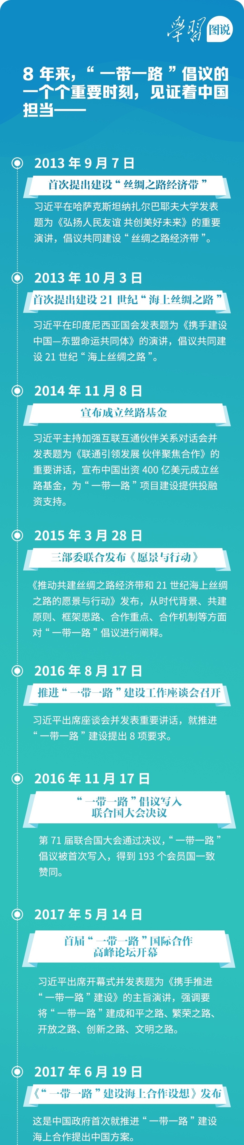 自此,千年丝路再次焕发出蓬勃生机,共建“一带一路”倡议成为推动构建人类命运共同体的重要实践平台。政策沟通、设施联通、贸易畅通、资金融通、民心相通,“一带一路”建设通世界、利天下。