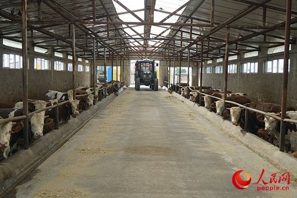 图为西吉县马莲乡南川村生态肉牛养殖示范园区的牛棚。人民网 梁宏鑫摄