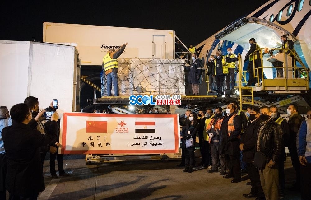 ↑2021年2月23日,在埃及开罗国际机场,工作人员运输疫苗。中国援助埃及的首批新冠疫苗当日凌晨运抵开罗,援助阿盟秘书处的新冠疫苗也同机抵达。疫情暴发以来,共建“一带一路”国家相互支持,缔结起团结抗疫、共同发展的“命运纽带”。我国已向110多个国家和国际组织提供了超过17亿剂新冠疫苗,其中多数是共建“一带一路”国家。同30多个国家发起“一带一路”疫苗合作伙伴关系倡议。