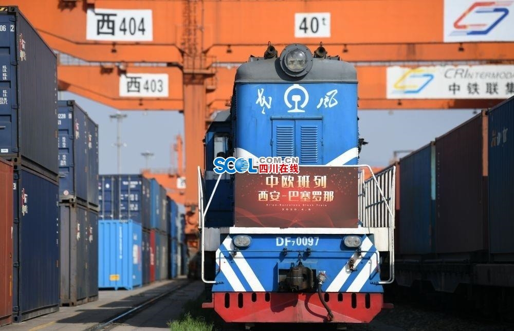 ↑2020年4月8日,西安至巴塞罗那中欧班列在西安市新筑车站等待发车。截至2021年10月底,中欧班列已铺画73条运行线路,通达欧洲23个国家的175个城市,累计开行超4.6万列,成为贯穿欧亚大陆的国际贸易“大动脉”。