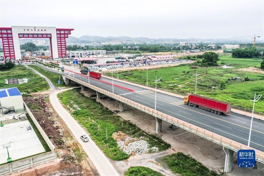 这是位于中越边境的北仑河二桥(2019年4月15日摄,无人机照片)。新华社记者 曹祎铭 摄