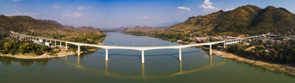 ↑这是2021年2月5日拍摄的老挝境内的中老铁路琅勃拉邦湄公河特大桥(无人机照片)。
