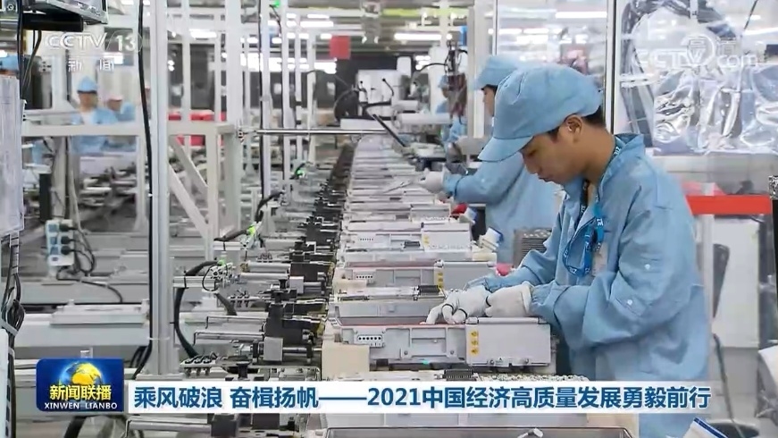央视网消息(新闻联播):2021年,是党和国家历史上具有里程碑意义的一年,站在“两个一百年”的历史交汇点,全面建设社会主义现代化国家开启新征程。面对复杂严峻的国内外形势,以习近平同志为核心的党中央从容应对百年变局和世纪疫情,坚持稳中求进工作总基调,完整、准确、全面贯彻新发展理念,加快构建新发展格局,推动高质量发展。中国经济逆风而上破浪前行,以强大的韧性、奋进的姿态,实现“十四五”良好开局,迈出全面建设社会主义现代化国家的坚实步伐。