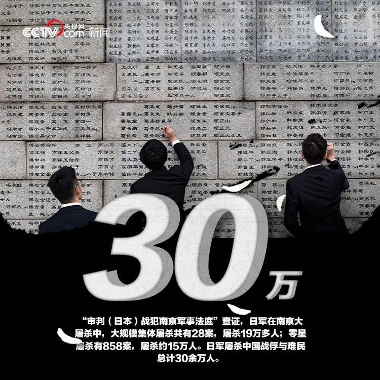 央视网消息(记者 弟辰晨 邓雨萌 刘京京):1937年12月13日,日军攻破南京城,制造了惨绝人寰的南京大屠杀惨案。“审判(日本)战犯南京军事法庭”查证,日军在南京大屠杀中,大规模集体屠杀有28案,屠杀19万多人;零星屠杀有858案,屠杀约15万人。日军屠杀中国战俘与难民总计30余万人。2014年2月27日,中国以立法形式将12月13日设立为南京大屠杀死难者国家公祭日。截至目前,南京侵华日军受害者援助协会登记在册的在世幸存者仅剩61人。愿逝者安息,和平永存!