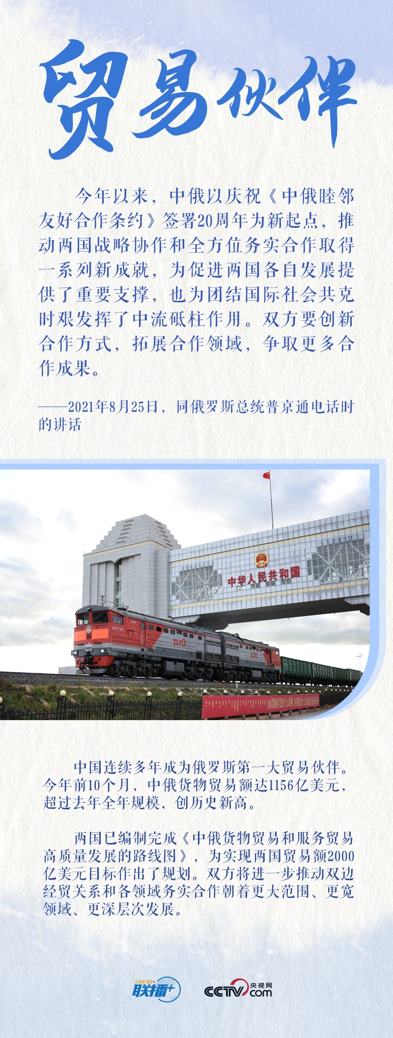 2021年对中俄关系具有特殊意义。两国围绕《中俄睦邻友好合作条约》签署20周年这一重要主线,深入开展政党合作、科技创新合作、能源合作等,为新时代中俄关系增添了新内涵。