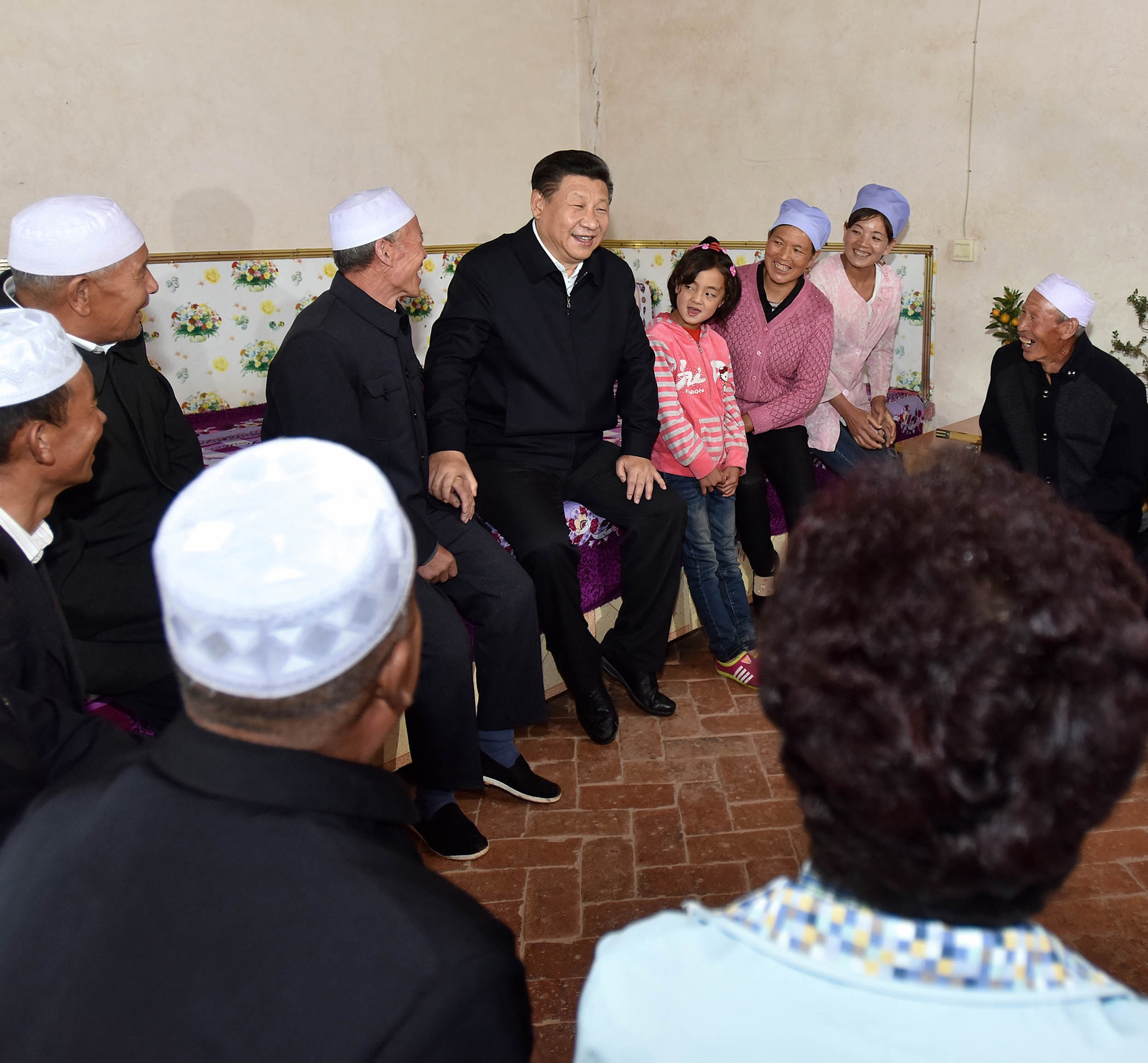 △2016年7月18日,习近平总书记在固原市泾源县大湾乡杨岭村村民马克俊家同一家人和村民代表亲切交谈。