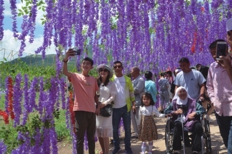 △2019年7月,第十五届宁夏六盘山山花旅游节暨泾源县首届杨岭乡村文化旅游节举办期间,游人如织。