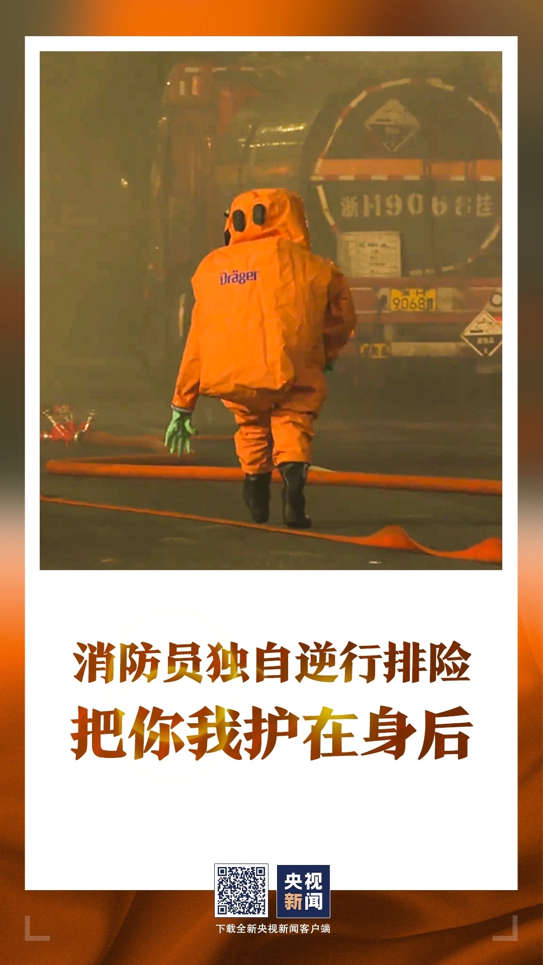 逆行排险的消防员……
