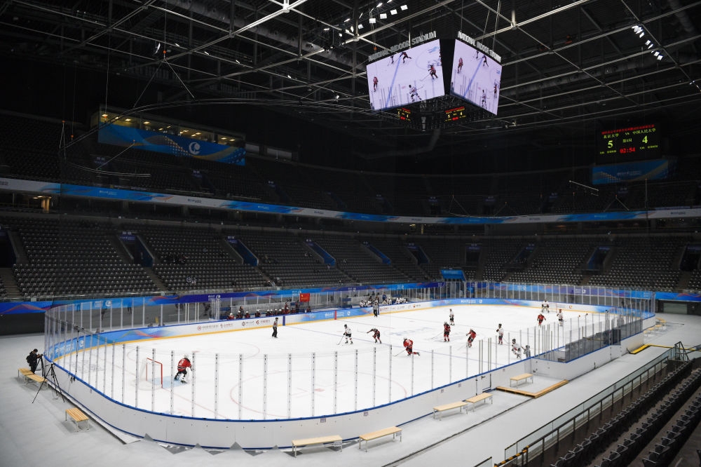 ↑2021年4月2日,“相约北京”冰上项目测试活动冰球比赛在国家体育馆正式拉开帷幕,这也是国家体育馆作为2022北京冬奥会和冬残奥会比赛场馆的首次亮相。据介绍,北京冬奥会和冬残奥会共使用39个场馆,其中10个利用既有场馆遗产、4个利用土地遗产,有效节约资金投入和土地开发。