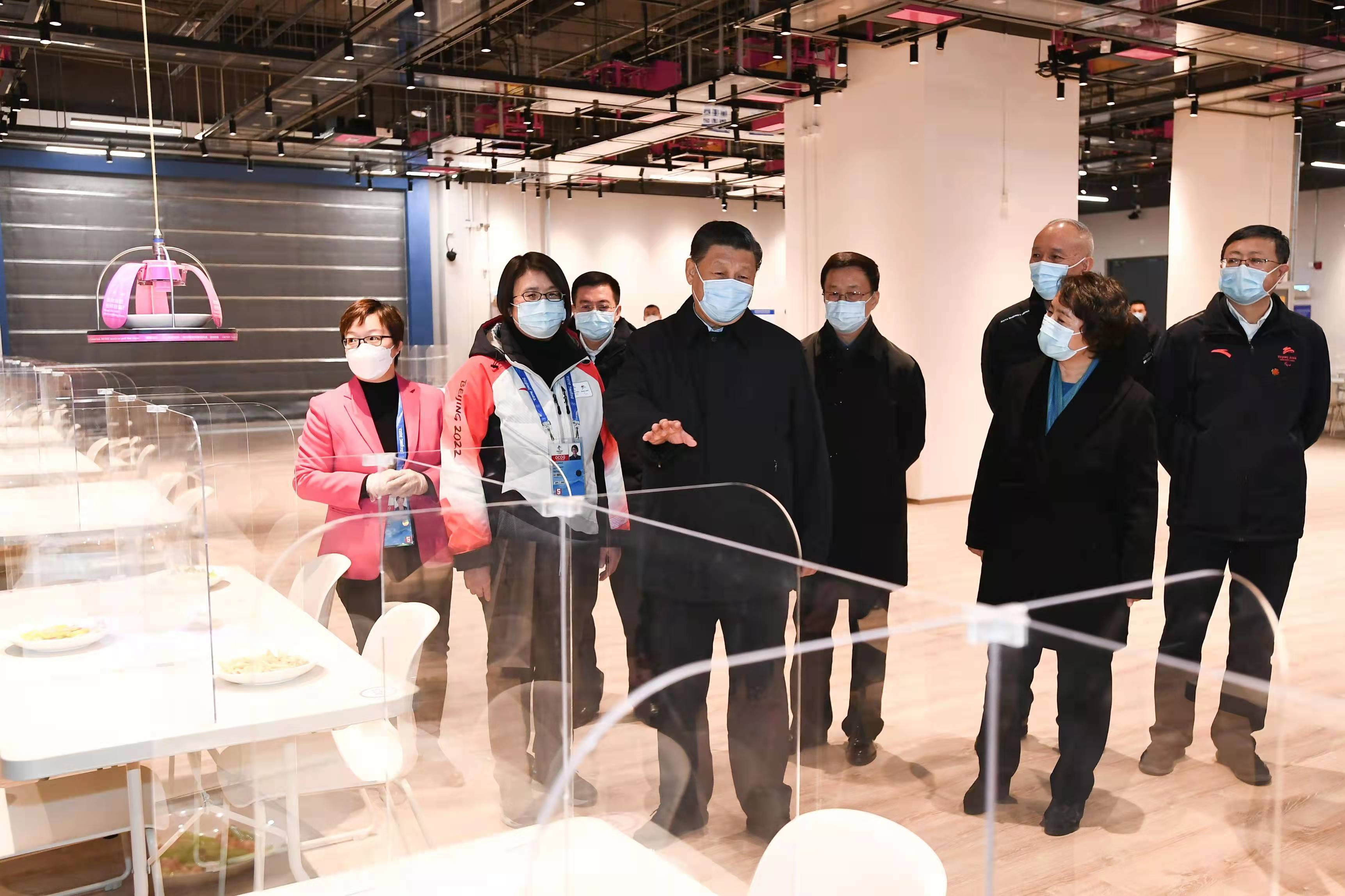 △2022年1月4日,中共中央总书记、国家主席、中央军委主席习近平在北京考察2022年冬奥会、冬残奥会筹办备赛工作。这是4日上午,习近平在北京冬奥会、冬残奥会主媒体中心智慧餐厅,察看智能餐饮设备运行情况。