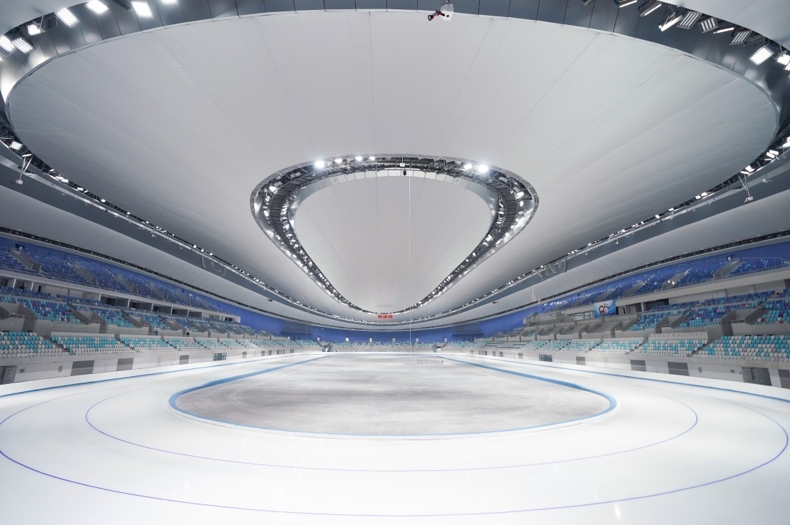国家速滑馆“冰丝带”内景。