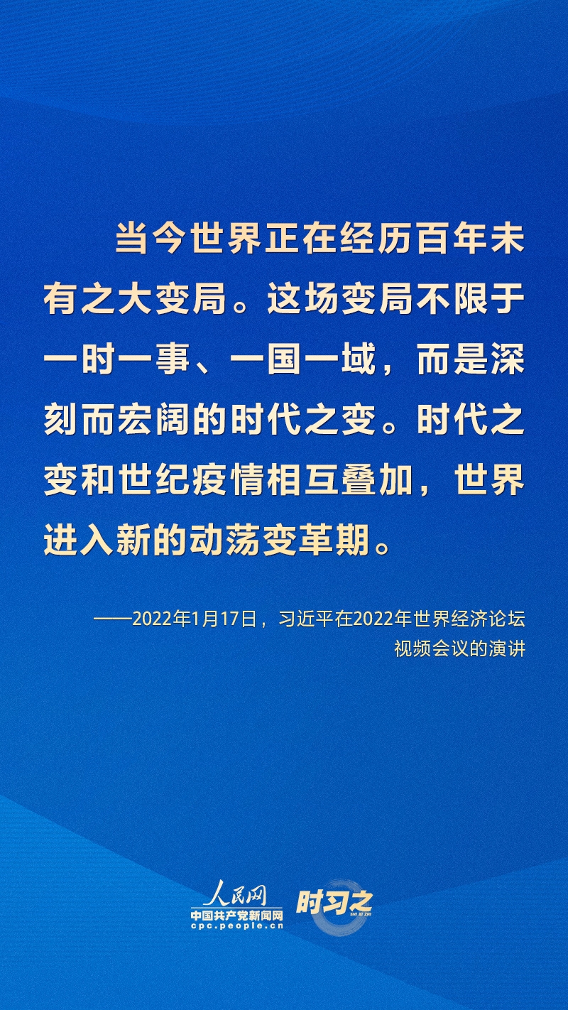 1月17日,国家主席习近平在北京出席2022年世界经济论坛视频会议并发表题为《坚定信心 勇毅前行 共创后疫情时代美好世界》的演讲,强调要在历史前进的逻辑中前进、在时代发展的潮流中发展。
