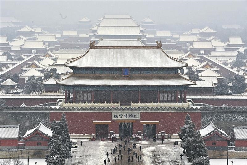 这是2022年1月22日从北京景山公园拍摄的故宫雪景。新华社记者 李鑫 摄