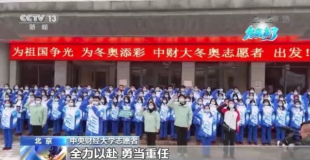 中央财经大学志愿者:服从大局,听从指挥,全力以赴,勇当重任,为祖国增光,为冬奥添彩。