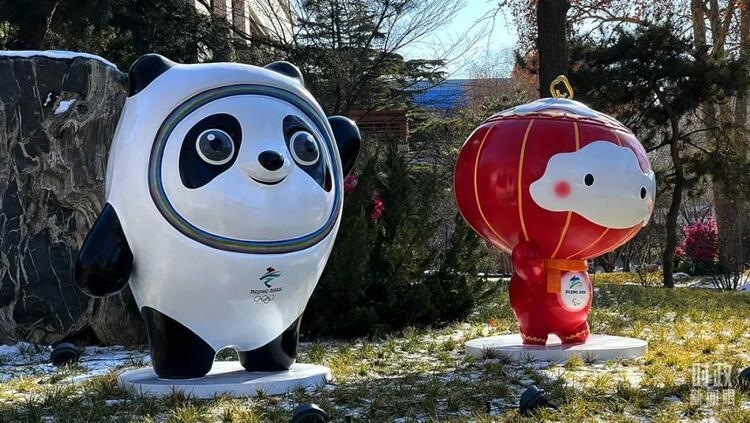 △北京冬奥会和冬残奥会吉祥物“冰墩墩”“雪容融”亮相钓鱼台国宾馆。(总台央视记者鄂介甫拍摄)