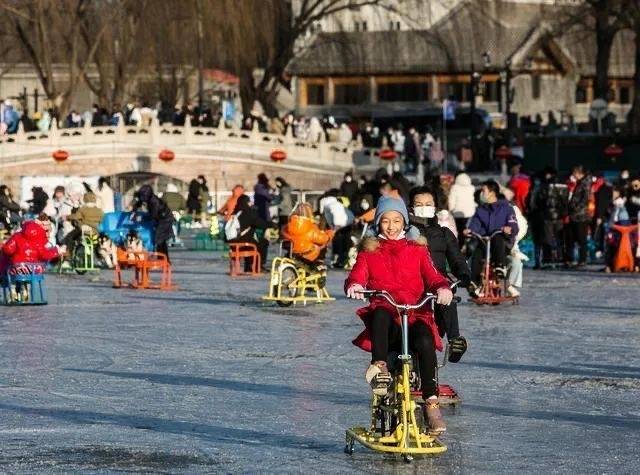 今年1月,什刹海冰场如期开放。冬日的阳光洒在冰面上。小组看到,除了滑冰,这里还有冰上自行车、冰车小海豹、冰上碰碰车等娱乐设施,俨然一个老幼皆宜的大型游乐场。