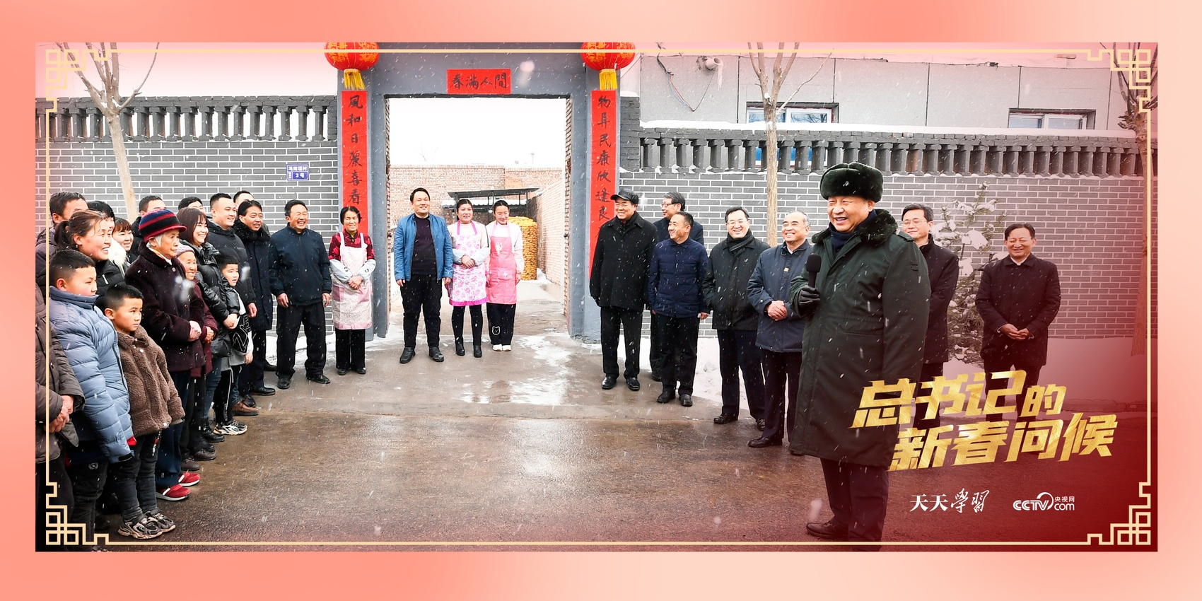 每逢春节前夕,总书记都要迎风踏雪走访基层,从塞外边陲到革命老区,从城市社区到民族村寨,为基层劳动者带去最诚挚的问候,为全国各族人民送上新春的祝福。