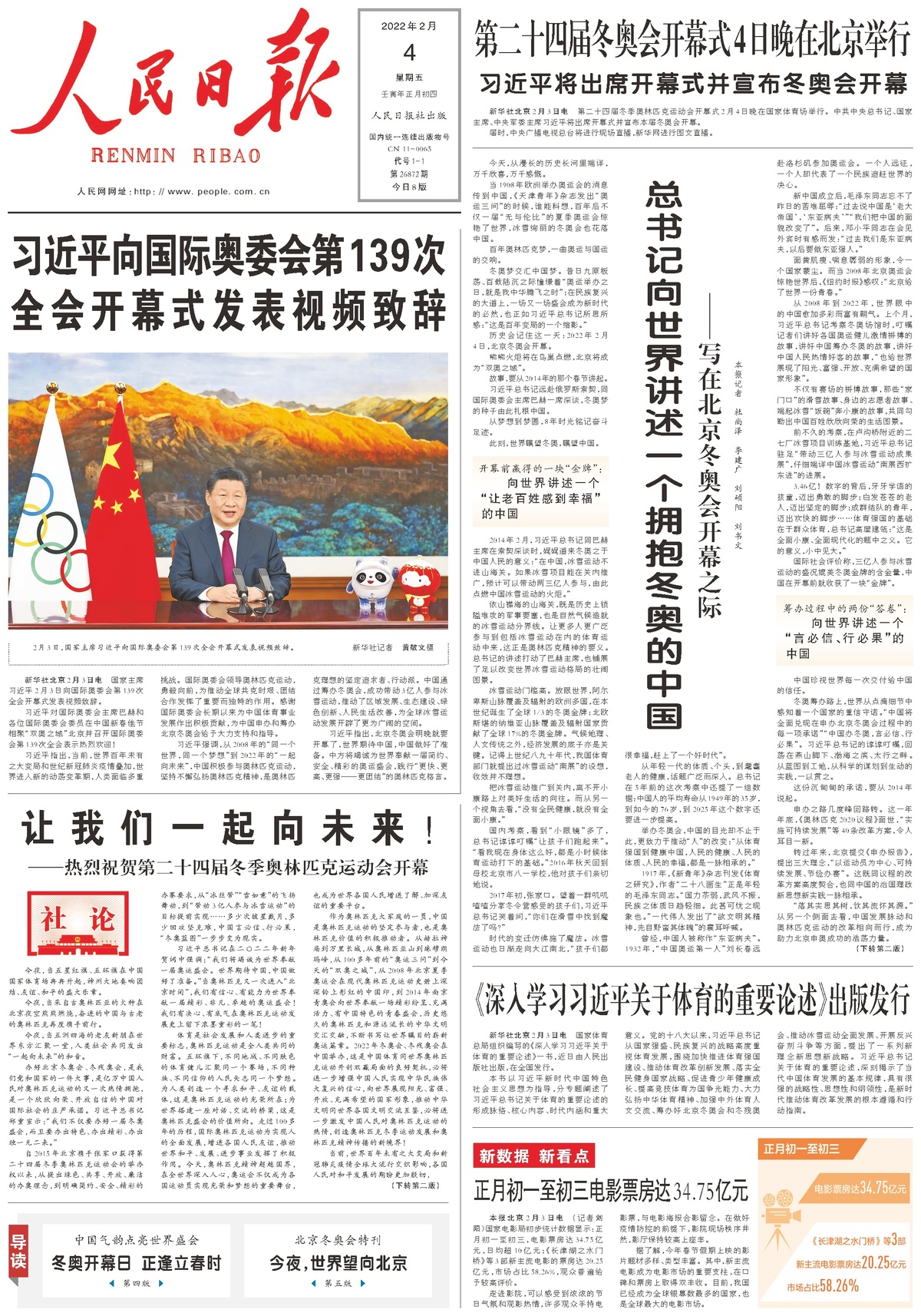 历史会记住这一天:2022年2月4日,北京冬奥会开幕。