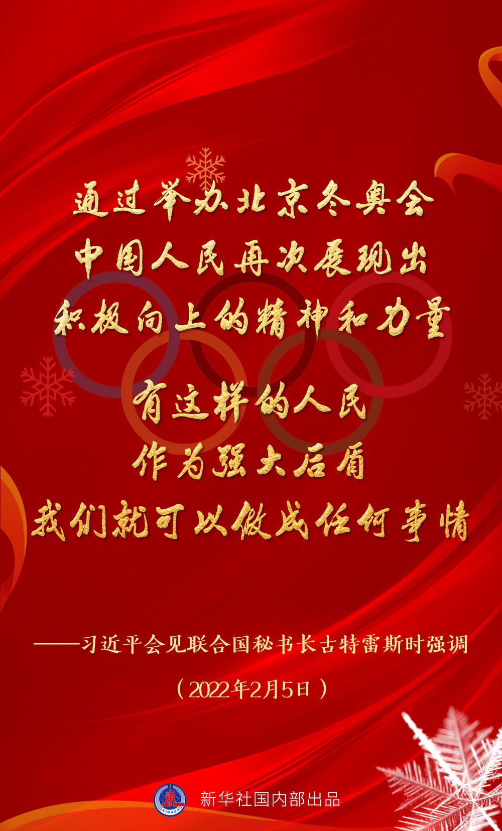 通过举办北京冬奥会,中国人民再次展现出积极向上的精神和力量。有这样的人民作为强大后盾,我们就可以做成任何事情。
