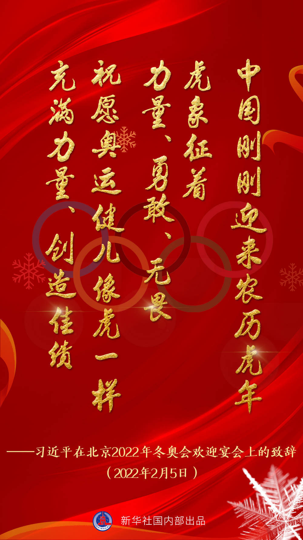 中国刚刚迎来农历虎年。虎象征着力量、勇敢、无畏,祝愿奥运健儿像虎一样充满力量、创造佳绩。