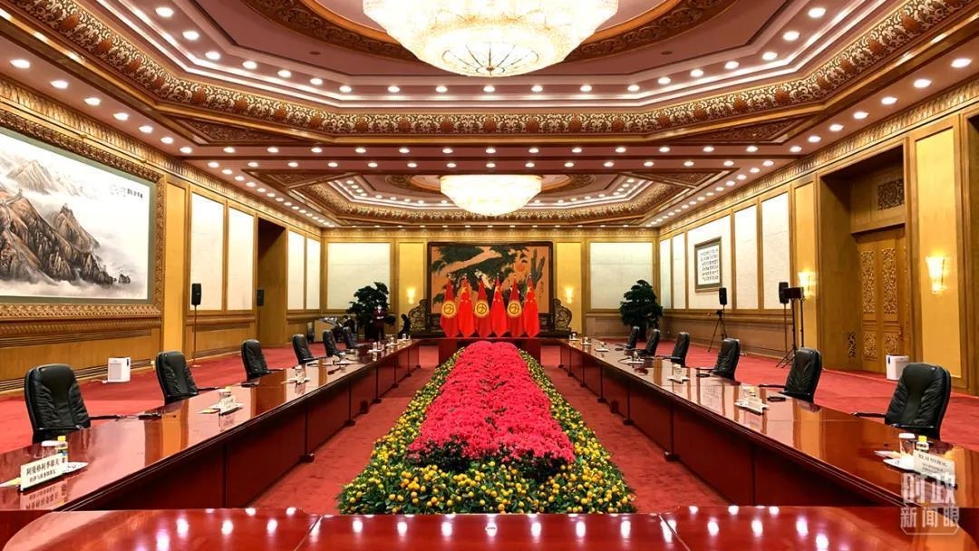 △中吉两国元首会谈开始前的现场。(总台央视记者段德文拍摄)