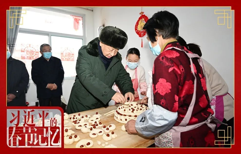 2022年1月26日,习近平总书记在山西省临汾市霍州市师庄乡冯南垣村,同师红兵一家做年馍。