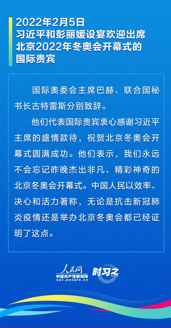 2月4日至6日,国家主席习近平同来华的外国元首、政府首脑、王室成员和国际组织负责人等国际贵宾一同出席北京2022年冬奥会开幕式,为他们举行欢迎宴会,并开展系列双边会晤。中国展现出的开放自信、勇毅担当,赢得了来宾的广泛赞许。