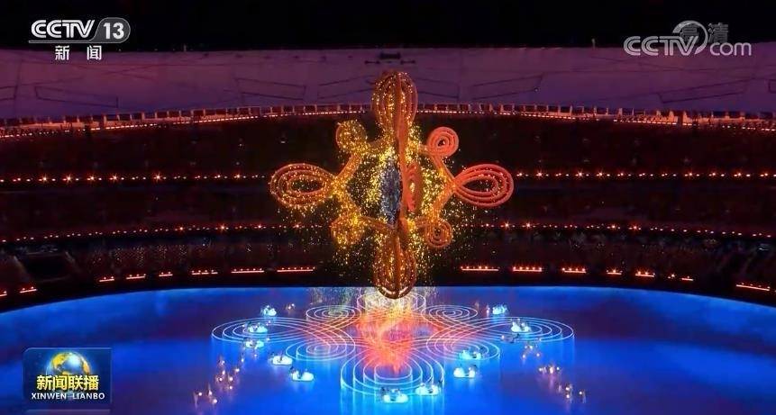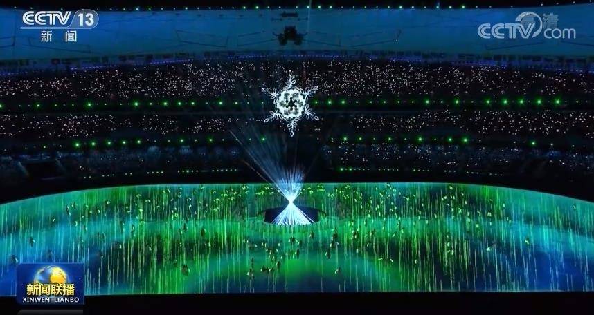 盛会即将结束,又到了分别的时刻。中国古人常折柳送别,寄托思念之情。365名各行各业、不同年龄的普通人手捧柳枝,汇聚在场地中央,代表一年365天的思念。白色的光束从场地中央亮起,形成一座光的丰碑,承托起主火炬“大雪花”。大屏幕播放短片《2022,有我们!》,记录下冬奥会一个个温暖人心的场景。