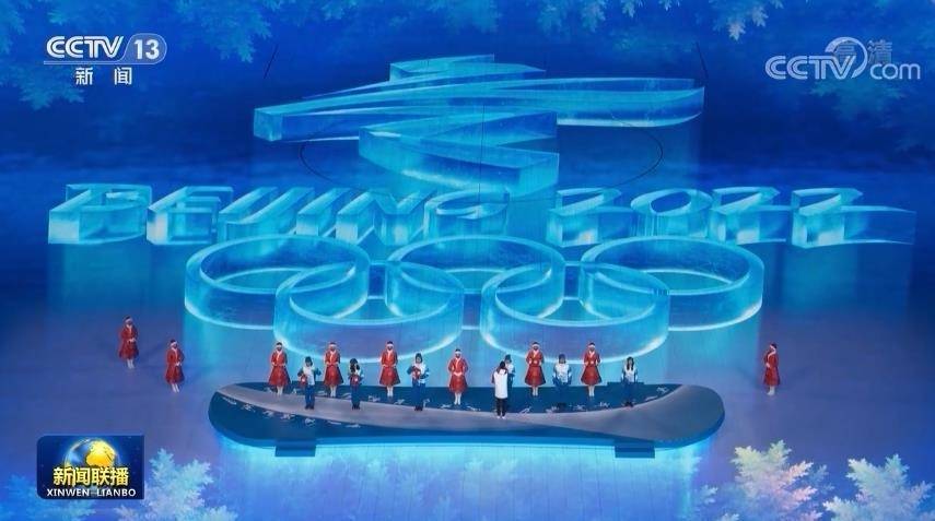 来自河北阜平山区的孩子们再一次唱响奥林匹克会歌,奥林匹克会旗在歌声中徐徐降下。