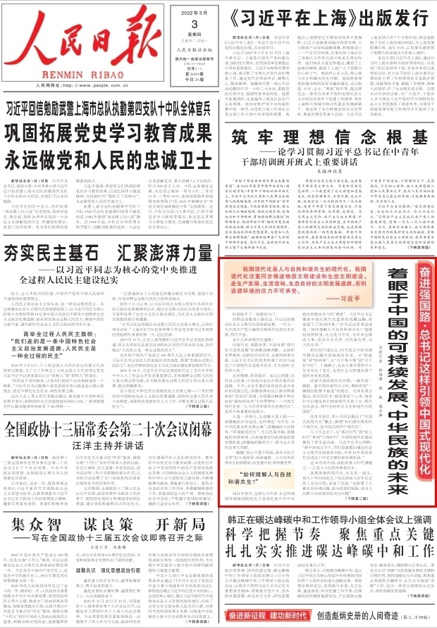 原标题:着眼于中国的可持续发展、中华民族的未来(奋进强国路·总书记这样引领中国式现代化)
