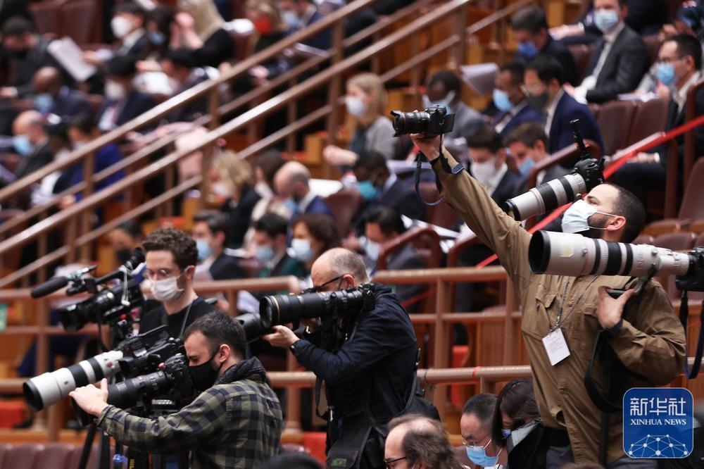 3月5日,第十三届全国人民代表大会第五次会议在北京人民大会堂开幕。这是记者在采访。新华社记者 金立旺 摄