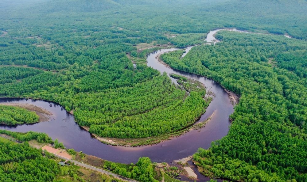 这是内蒙古呼伦贝尔根河源国家湿地公园景色(无人机照片,2021年6月8日摄)。新华社记者 连振 摄
