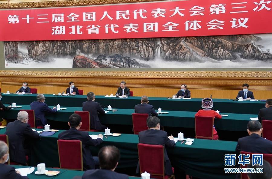 2020年5月24日,中共中央总书记、国家主席、中央军委主席习近平参加十三届全国人大三次会议湖北代表团的审议。 新华社记者 李学仁 摄