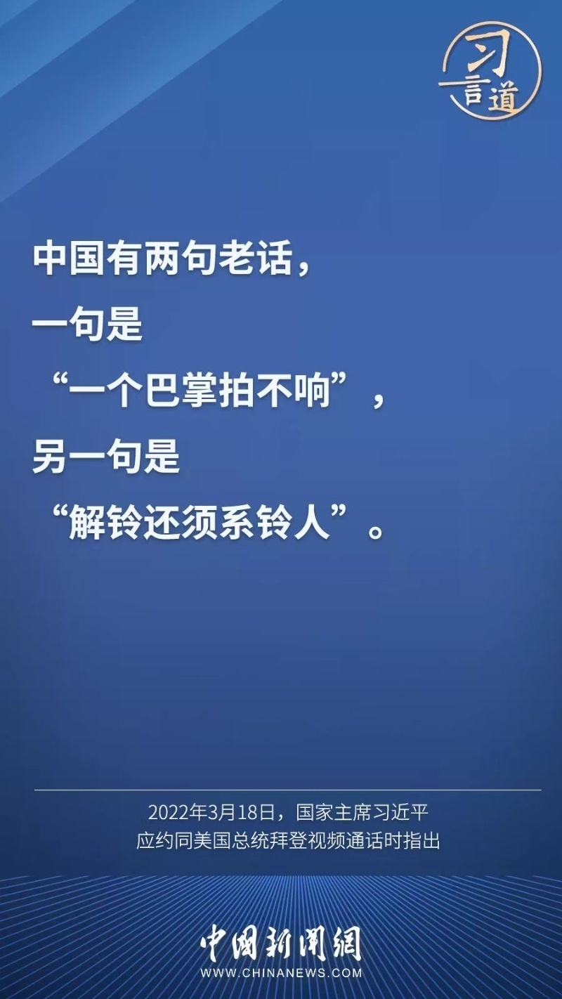 国家主席习近平18日晚应约同美国总统拜登视频通话。两国元首就中美关系和乌克兰局势等共同关心的问题坦诚深入交换了意见。习近平指出——