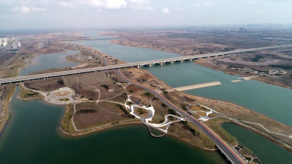 这是3月18日拍摄的滹沱河石家庄市区段景色(无人机照片)。(梁子栋摄)