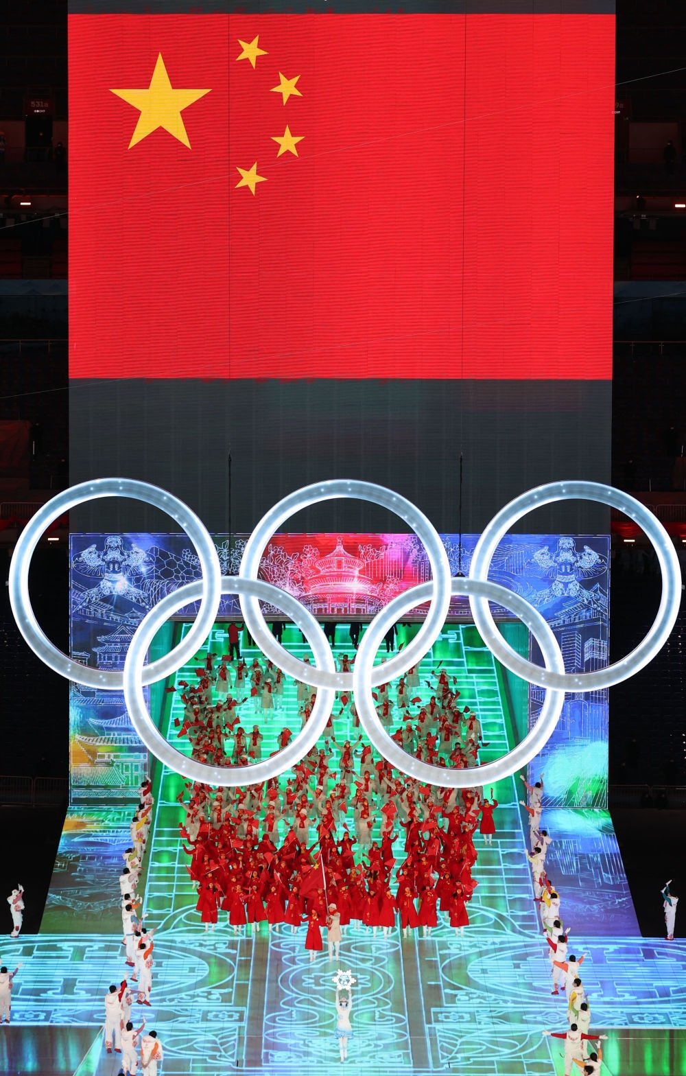 在北京冬奥会开幕式上,中华人民共和国国旗入场。