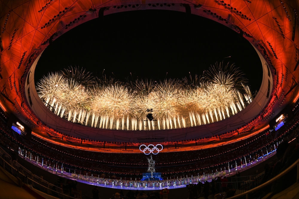 北京冬奥会闭幕式上的焰火表演。