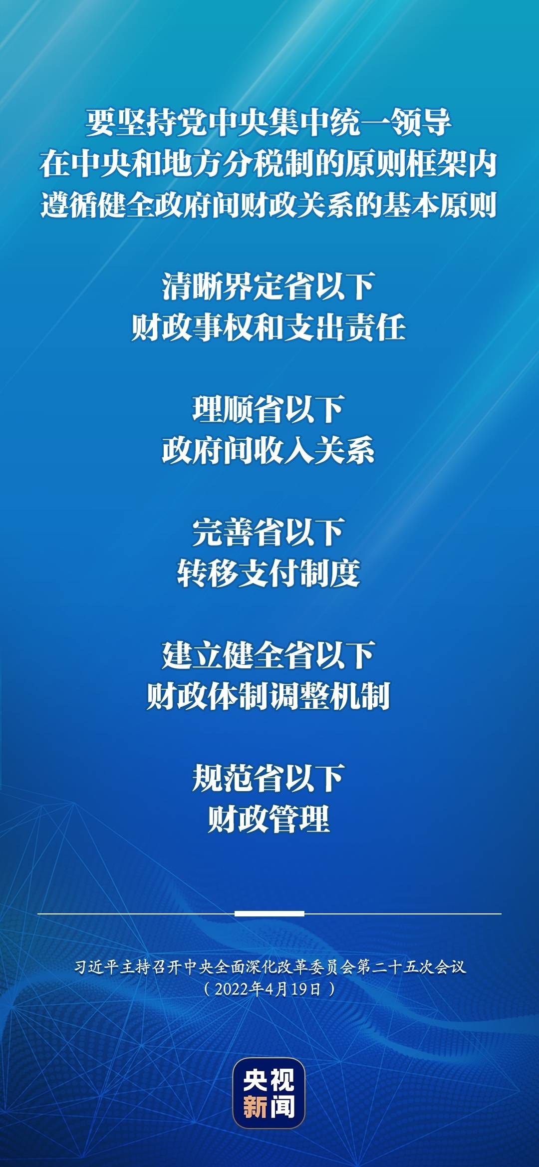 中共中央总书记、国家主席、中央军委主席、中央全面深化改革委员会主任习近平4月19日下午主持召开中央全面深化改革委员会第二十五次会议,审议通过了《关于加强数字政府建设的指导意见》、《关于进一步推进省以下财政体制改革工作的指导意见》、《关于建立健全领导干部自然资源资产离任审计评价指标体系的意见》、《“十四五”时期完善金融支持创新体系工作方案》、《关于完善科技激励机制的若干意见》。