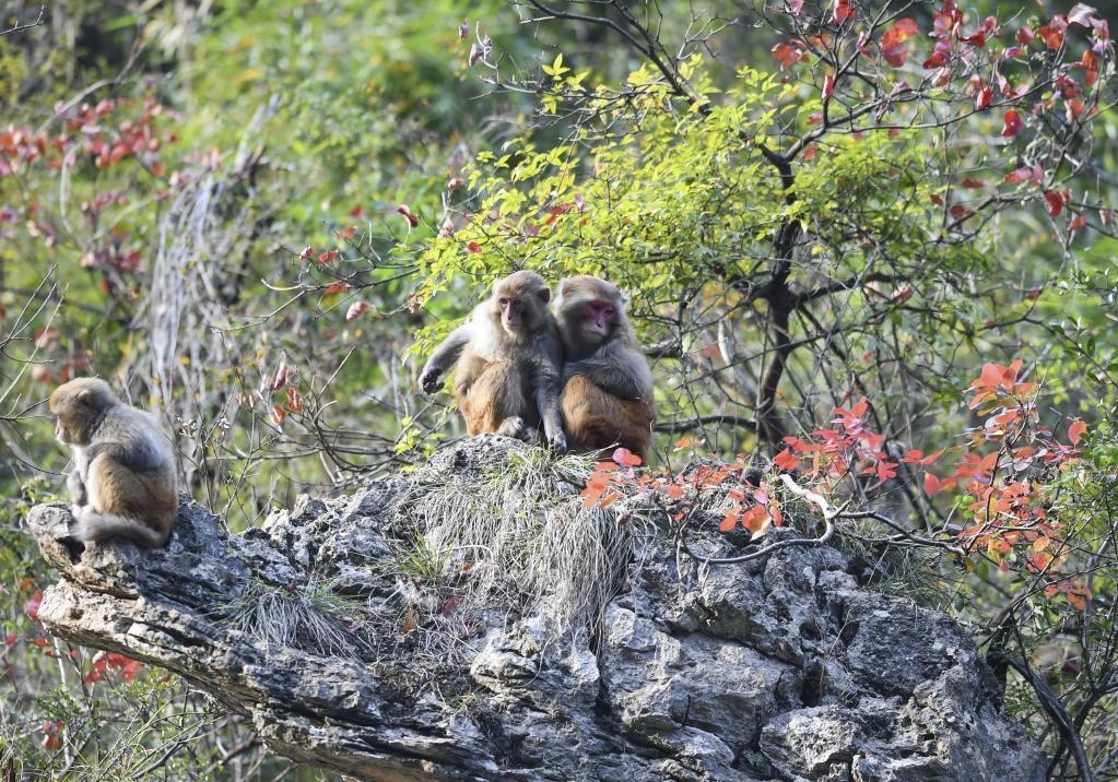 2019年12月27日拍摄的重庆巫山小三峡岸边的野生猕猴。新华社记者 王全超 摄